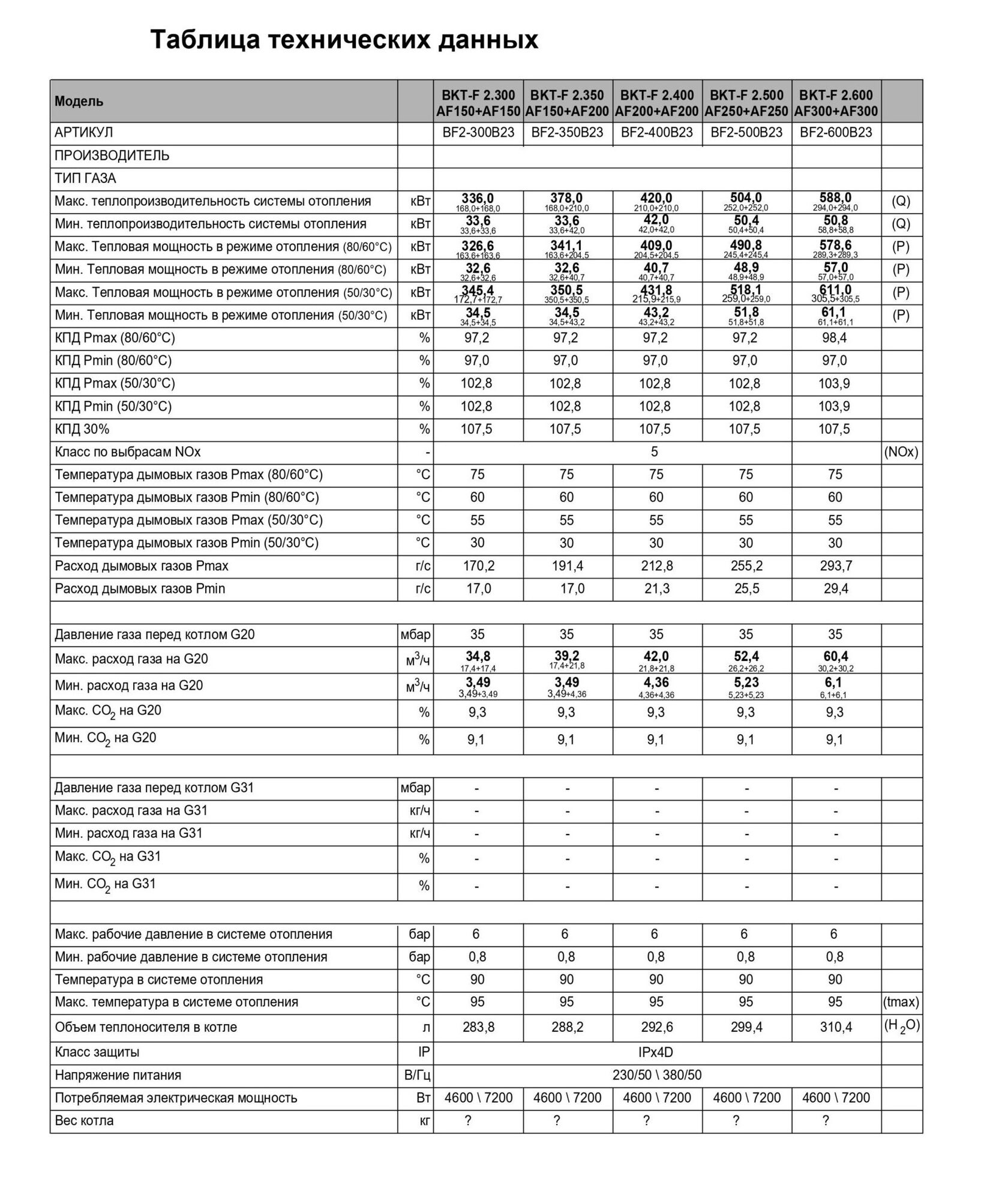 300 до 600 кВт с рабочим давлением до 0,5 МПа и максимальной температурой воды на выходе из
